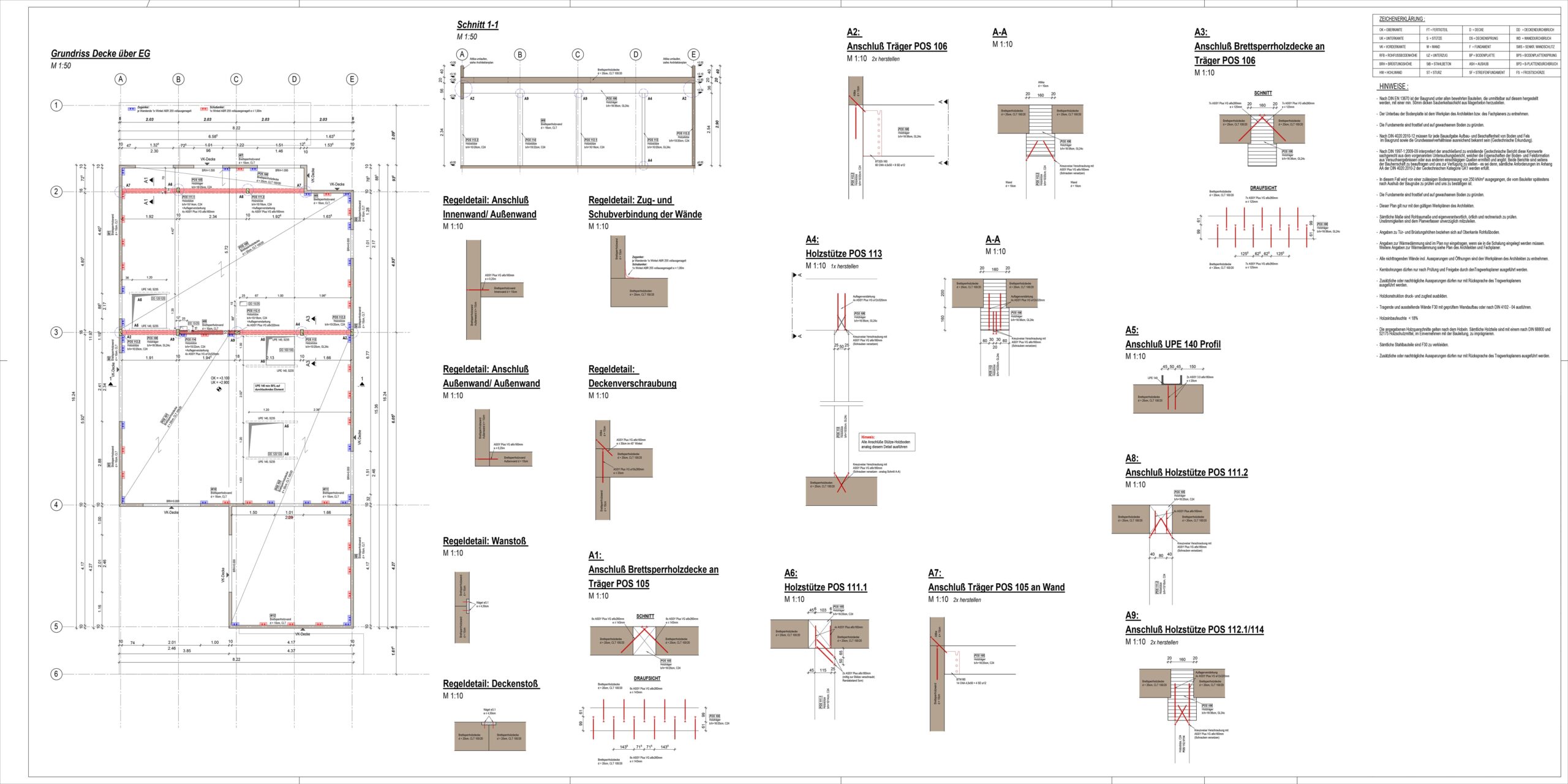 Preparation of foundation plans, timber cross-sections with details