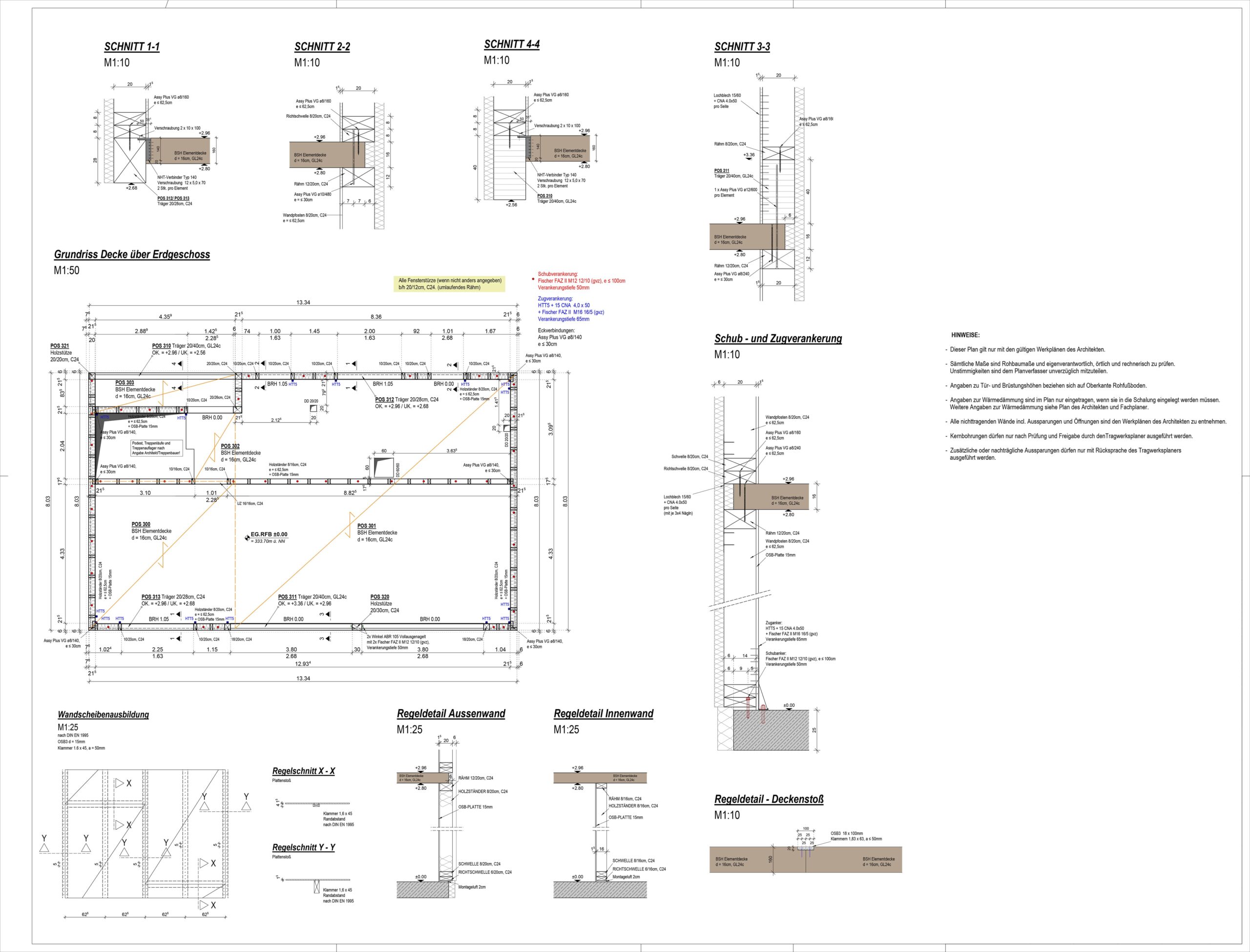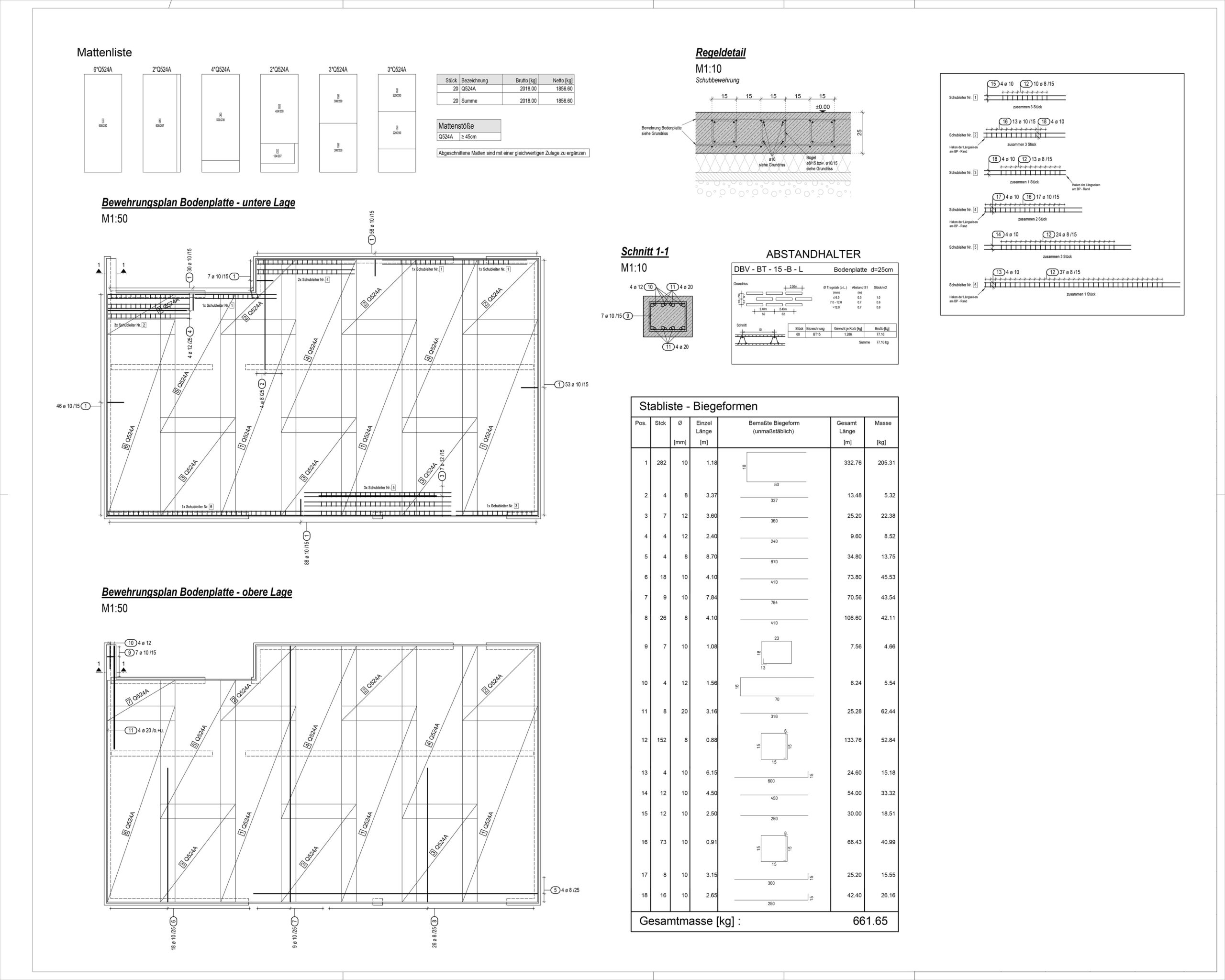 Preparation of formwork, reinforcement plans, timber cross-sections with details